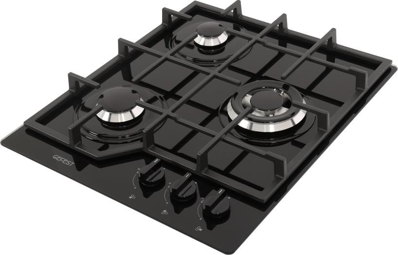 Габариты ВхШхГ, см: 10х45х52,5; Размеры монтажного проема, ШхГ, см: 40,6 х 48,6; Тип подключения: Газовый; Количество зон приготовления: 3; Цвет модели: Черный; Материал варочной поверхности: Стекло; Материал решеток варочной поверхности: Чугун; Двухзонная горелка варочной поверхности; Газ-контроль горелок стола; Электророзжиг горелок стола: Розжиг встроен в ручки; Управление конфорками стола: Механическое; Диапазон номинального напряжения сети, В: 220-230; Номинальная частота сети, Гц: 50