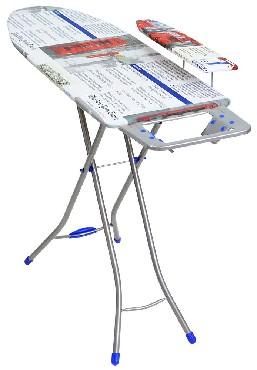 Материал рабочей поверхности ДСП. 4-опорные металлические ножки. 2 положения высоты: 0,7 и 0,8 м. EUROподставка под утюг с термостойкими силикон. заклепками. Чехол из качественных х/б тканей ярких расцветок.