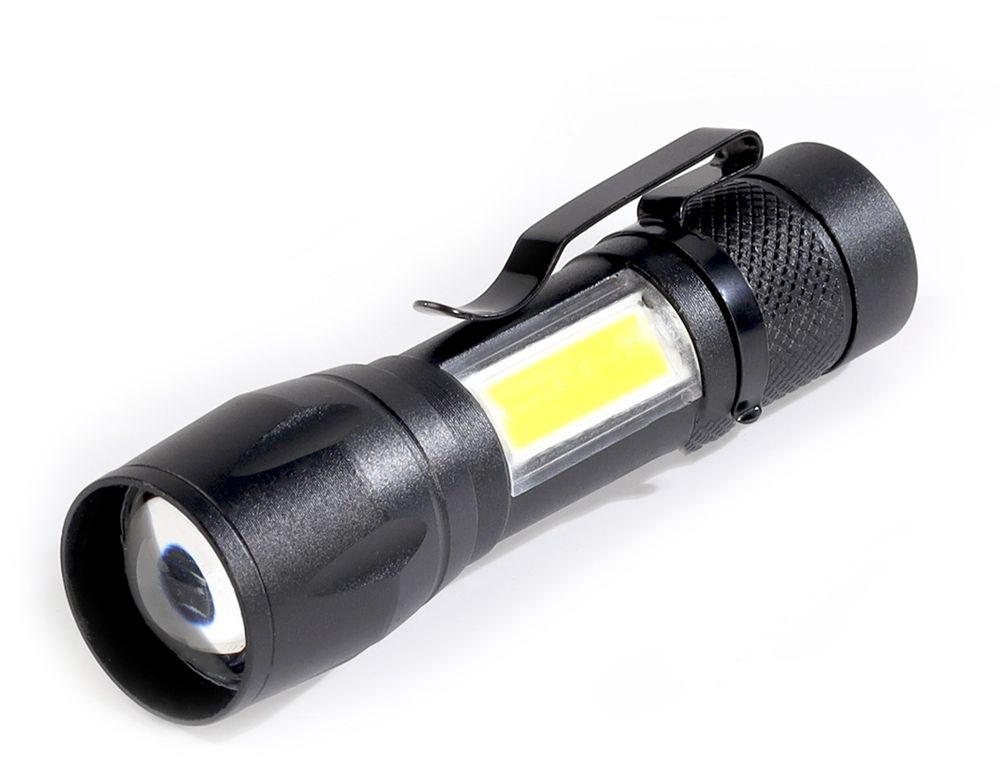 Материал корпуса: анодированный алюминий Два источника света: 1. Светодиод CREE XP-E 3 Вт с коллиматорной линзой и фокусировкой светового луча 2. Боковая подсветка для ближнего освежения светодиодом COB 3 Вт Четыре режима работы: дальний свет, ближний свет, кемпинг, стробоскоп Максимальный световой поток: 150 Лм Дальность освещения: 100 м Доп. возможности: клипса для крепления на ремень Источник питания: 1 АА (входят в комплект) Упаковка: блистер