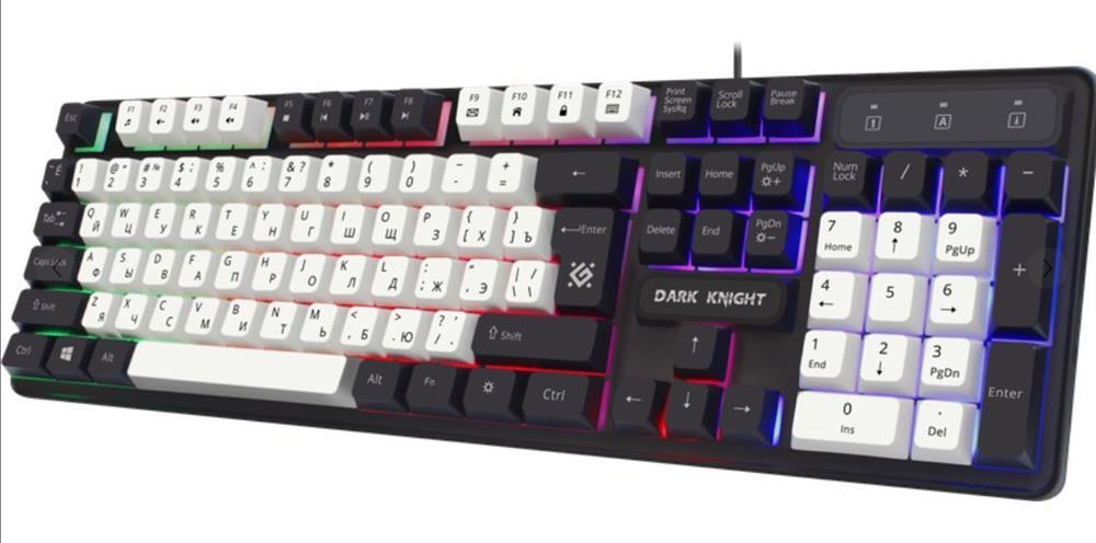 Кейкапы двух цветов Радужная подсветка 12 функциональных кнопок: - Дополнительные клавиши для управления звуком, запуска приложений «Мой компьютер» и «Калькулятор» Управление мультимедийными программами: - Активируются клавишей FN Возможность выключения подсветки Увеличенная площадь клавиш-модификаторов (Ctrl, Shift), клавиш Enter и BackSpace Влагоустойчивая конструкция клавиатуры Горячие клавиши для быстрого доступа к офисным, мультимедийным и интернет приложениям Многофункциональное программное обеспечение: - Работает только с операционной системой Windows Угол наклона клавиатуры регулируется с помощью ножек