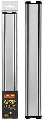 Длина: 32 см Ширина 4,5 см Толщина: 1,8 см Вес: 262 гр Позволяет хранить ножи и другие металлические инструменты на стене, сохраняя пространство на рабочем столе. Крепеж входит в комплект. Материал: алюминий, металл с цинковым покрытием, магнит, полипропилен
