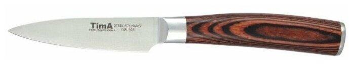 Материал: Молибден-ванадиевая сталь. Ручка Pakka коричневая. Благодаря молибдену лезвие имеет нужную жесткость, а ванадию - металл не вступает в химические реакции с продуктами. Твердость лезвия по шкале Роквелла — 55 HRC. Коричневая ручка Pakka покрыта лаком не скользит и удобно лежит в руке. Форма его клинка позволяет раскачивать нож на разделочной доске и достигать точных разрезов.