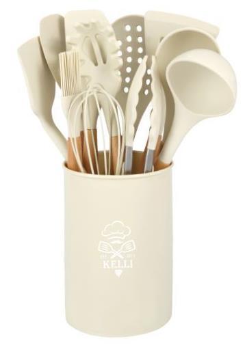 Набор кухонных принадлежностей 12 предметов: Лопатка для жарки; Кисточка; Щипцы; Лопатка кондитерская; Половник; Шумовка; Лопатка с отверстиями; Ложка для салатов; Венчик; Ложка; Ложка для спагетти; Состав: бамбук и силикон Выдерживает температуру от -30°C до +230°C