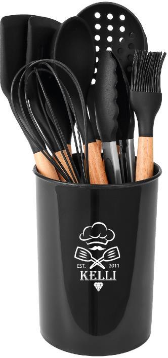 Набор кухонных принадлежностей 10 предметов: Лопатка для жарки; Кисточка; Щипцы; Лопатка кондитерская; Половник; Шумовка; Лопатка с отверстиями; Ложка для салатов; Венчик Состав: бамбук и силикон Выдерживает температуру от -30°C до +230°C