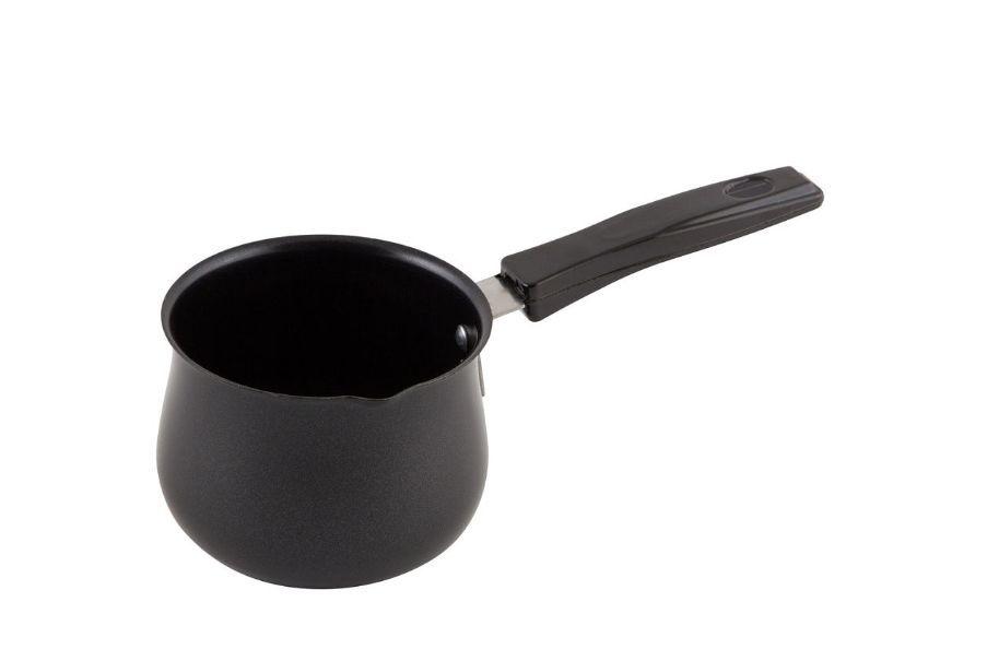 Объем: 380 мл. Толщина: 0,8 мм. Внутри 2 слоя антипригарного покрытия Размер: диаметр 8,6 см* высота 9,5 см Материал: углеродистая сталь, бакелит Использовать на малом и среднем огне, данное изделите не следует перегревать. Можно мыть в посудомочной машине. Упаковка: стикер, пакет из пузырчатой плёнки. Подходит для всех типов плит (включая индукционные)