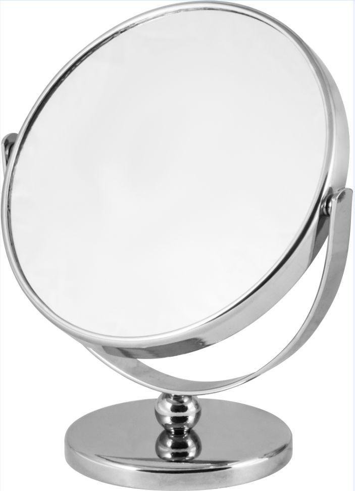 Зеркало косметическое двустороннее на ножке (1Х5) Диаметр: 12,5см Размер: 13,5*8*15 см Материал: хромированный металл, стекло С одной стороны - обычное зеркало, с другой - с 5-кратным увеличением Упаковка: картонная коробка Двустороннее настольное зеркало отлично подойдет для нанесения макияжа и проведения процедур по уходу за кожей лица. У зеркала две поверхности, одна из которых дает обычное отражение, другая - с 5 кратным увеличением.