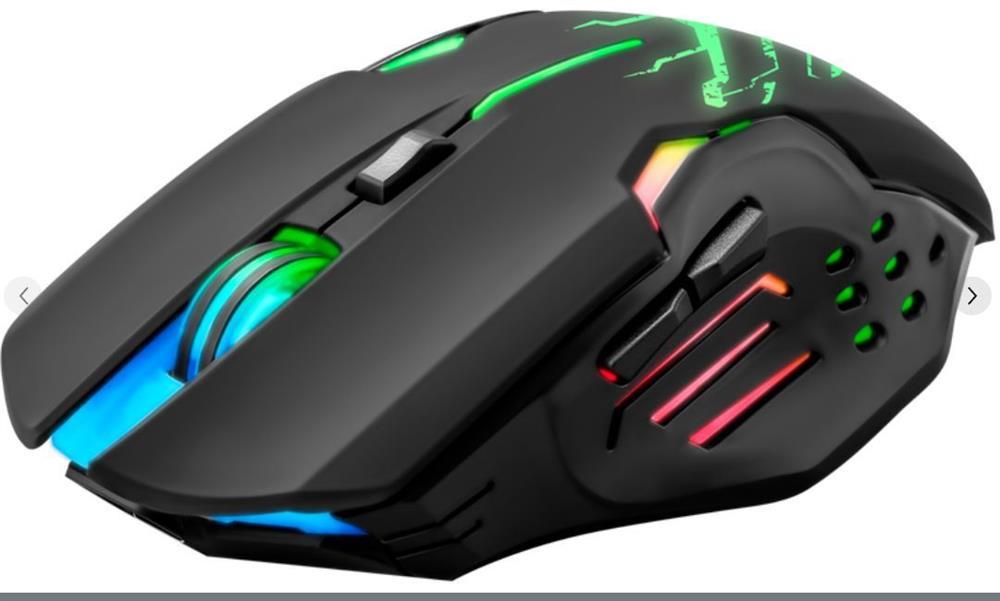 Мышь игровая, проводная, оптическая, интерфейс USB, 5 кнопок, колесо прокрутки, изменяемое разрешение - 1200/1600/2400/3200 dpi,2 дополнительные боковые кнопки, ферритовый фильтр помех, емкость аккумулятора - 400 мА ·ч, радужная подсветка, 5 настраиваемых кнопок, эргономичная форма обеспечивает удобный захват, бесшумные щелчки, тефлоновые ножки, длина кабеля - 1,2 м.
