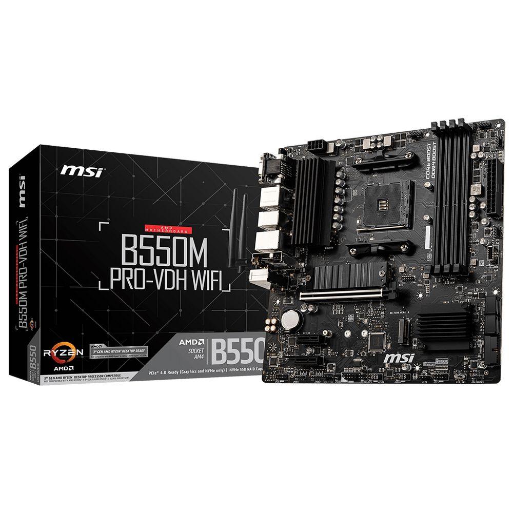 Материнская плата MSI Bad Pack B550M PRO-VDH WIFI B550, AM4, 4*DDR4, 1*PCIEx16, 2*PCIEx1, 2*M.2, 1*TypeC, 6*USB3.2Gen1, 6*USB2.0, 4*SATA3.0, 1G, VGA, DP, HDMI, M-ATX, RTL
