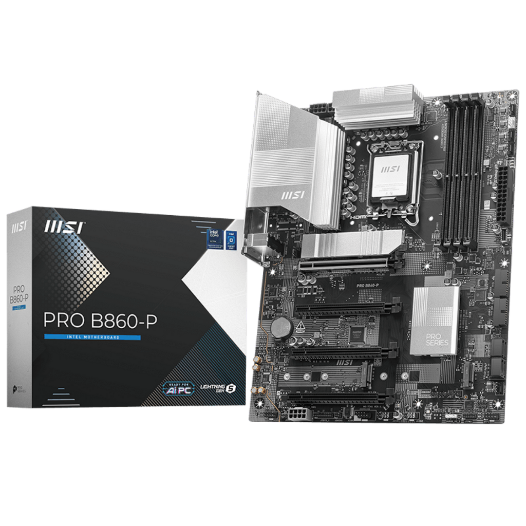 Материнская плата MSI PRO B860-P B860, LGA1851, 4*DDR5, 4*PCIEx16, 3*M.2, 1*TypeC, 2*USB3.2Gen2, 6*USB3.2Gen1, 8*USB2.0, 4*SATA3.0, 5G, Type-C(DP), DP, HDMI, ATX, RTL