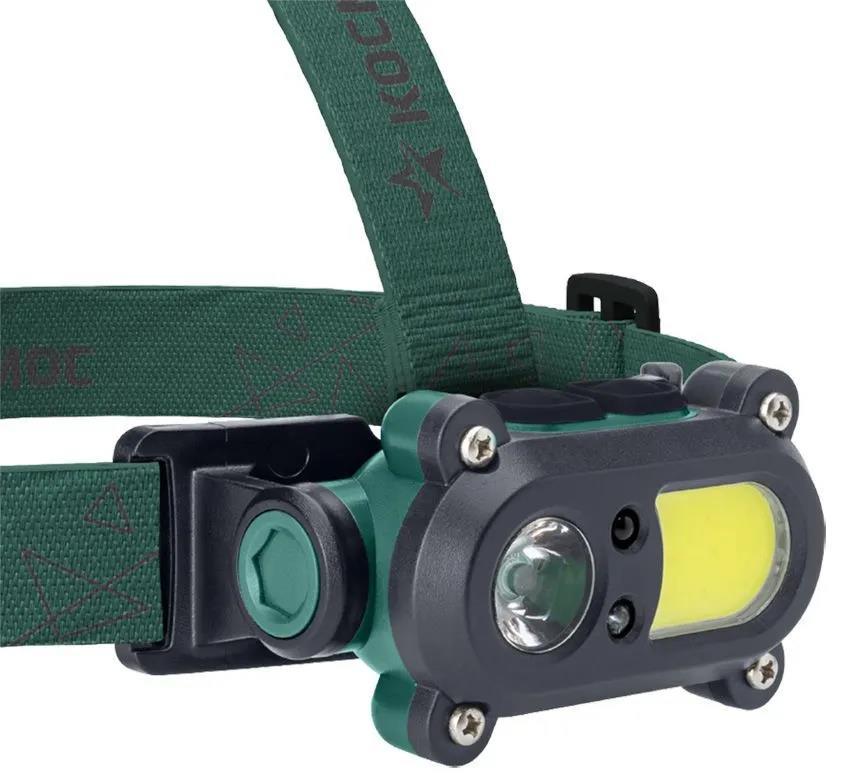Фонарь налобный КОСМОС (KOC502Lit) - двойной фонарь в очень прочном, защищенном от дождя корпусе. Две кнопки: для широкого света, и для луча. Модель выручит в любую погоду и любой сезон: каждый из двух источников света можно включать также с помощью сенсора, если руки заняты или в перчатках: достаточно просто провести рукой перед лицом. Источник света: луч 3Вт LED (с коллиматорной линзой - позволяет создать поток света нужной направленности без снижения интенсивности); широкий свет 3Вт COB LED; Источник питания: Li-ion аккумулятор 18650 3,7В 1200 мА/ч (встроенный), зарядный USB-шнур в комплекте; Количество режимов: 6 (отдельная кнопка: луч яркий, экономичный, мигающий / отдельная кнопка: широкий свет яркий, экономичный, мигающий/ сенсор активируется удержанием кнопки); Световой поток: 200 лм. (луч)/200 лм. (широкий свет); Дистанция освещения: 70 м. (луч)/27м2 (широкий свет); Корпус: ABS-пластик; IP54; Размер: 10x4.7x5.3 см.; Налобный регулируемый эластичный ремешок