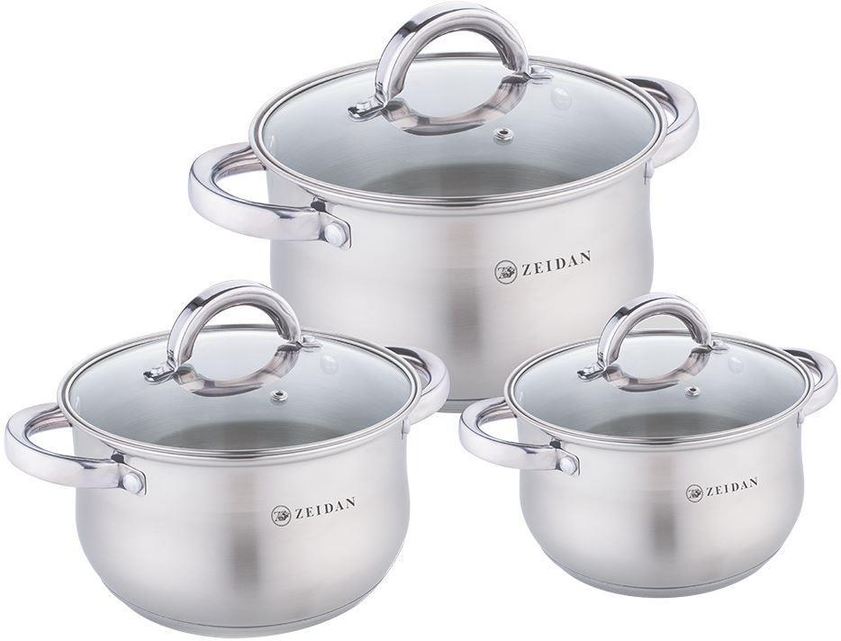 Набор посуды, 6 предм. Z-50666 (3 КАСТРЮЛИ С КРЫШКАМИ: 2.1 Л (d16 см ), 3.0 Л (d18 см ), 4.0 Л (d20 см ), нержавеющая сталь, 5-ти СЛОЙНОЕ КАПСУЛИРОВАННОЕ ДНО, крышки - стекло, внутренняя - матовая полировка, снаружи – комбинированная полировка.