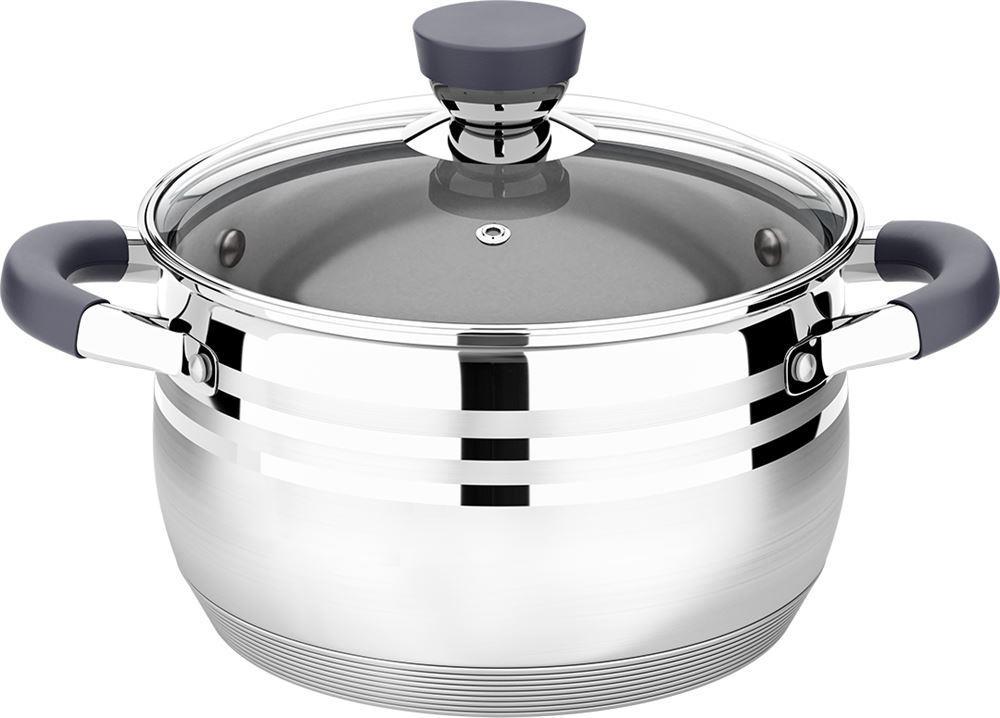 Материал - Нержавеющая сталь AISI 201. Полировка – Комбинированная. Дно Индукционное, Капсулированное. Мытье - В посудомоечной машине, Ручная мойка. Использование в духовке – Нет. Отверстия для слива воды – Нет. Ручки - Нержавеющая сталь, Полые, Силиконовая отделка