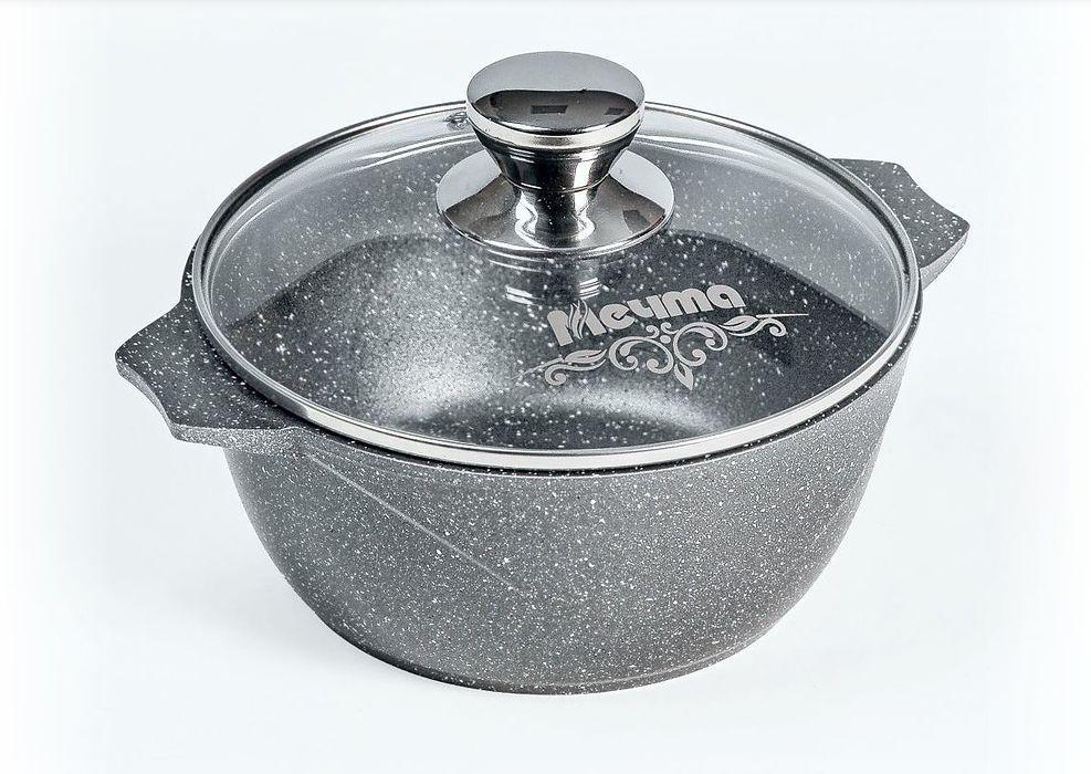 Кастрюля 5л. со стеклянной крышкой. Антипригарное покрытие Greblon на водной основе без PFOA. Серия "Гранит". Подходит для всех типов плит, кроме индукционных. Можно использовать в посудомоечной машине. Ресурс более 12 000 циклов, толщина покрытия до 55 мкр. Толщина дна 5,5-6мм., толщина стенок 3,6-4мм. Покрытие Greblon позволяет готовить с минимальным количеством масла, сохраняя вкусовые и полезные свойства продуктов. Литой толстостенный корпус не подвержен деформации, а утолщенное дно равномерно распределяет тепло по всей поверхности.
