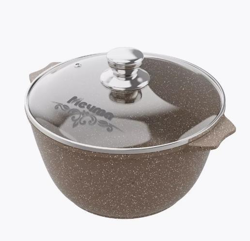 Кастрюля 6л.со стеклянной крышкой. Антипригарное покрытие Greblon Rough на водной основе без PFOA. Серия "Гранит brown". Подходит для всех типов плит, кроме индукционных. Можно использовать в посудомоечной машине. Ресурс более 15 000 циклов, толщина покрытия до 55 мкр. Толщина дна 5,5-6мм., толщина стенок 3,6-4мм. Покрытие Greblon Rough позволяет готовить с минимальным количеством масла, сохраняя вкусовые и полезные свойства продуктов. Литой толстостенный корпус не подвержен деформации, а утолщенное дно равномерно распределяет тепло по всей поверхности.
