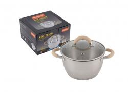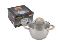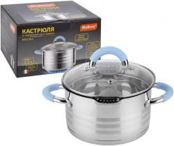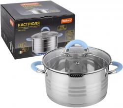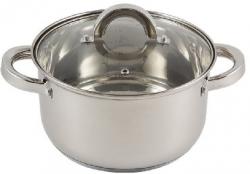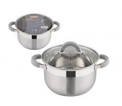 MALLONY Кастрюля BRAVO, объем 2,9 л, из нерж стали с крышкой жаропрочного стекла, размер 18*11,5 см (005429) 1285