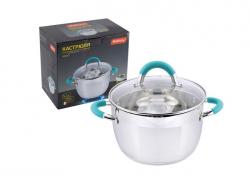 MALLONY Кастрюля Fortuna, объем 3,3 л, из нерж стали с крышкой, матовый корпус, ручки с силиконом (007219) 959