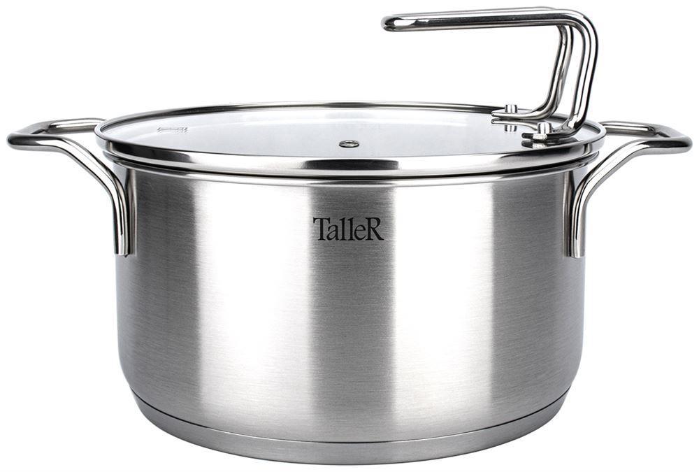 Кастрюля "Инесс" Объем 5 л. Материал: нержавеющая сталь 18/10 Крышка из закаленного стекла со специальным отверстием для выхода пара Удобные отметки литража на внутренней поверхности посуды Капсулированное дно с алюминиевой вставкой обеспечивает идеальное
