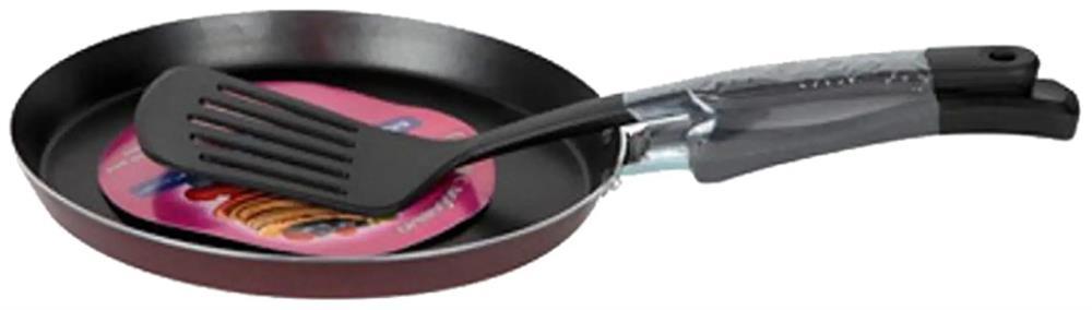 Легкая и удобная блинница с антипригарным покрытием. Прочный алюминиевый корпус из штампованного металла быстро нагревается и равномерно обжаривает блинчики без пригорания и прилипания. Низкие бортики максимально облегчают процесс переворачивания: тесто получится ровным и аккуратным. Антипригарное покрытие протестировано на износостойкость, не содержит вредных примесей и абсолютно безопасно. Внешнее декоративное покрытие легко моется и долго сохраняет свой насыщенный цвет. Модель выпускается в бордовом цвете, подходит для газовых и электрических плит. Высота борта сковороды 2 см Толщина дна (мм) 1.8 мм Высота упаковки 9 см Диаметр предмета 22 см Длина упаковки 33 см Материал посуды алюминий Назначение посуды для приготовления Ширина упаковки 45 см Внутреннее покрытие антипригарное Форма изделия круг Толщина стенок 1.8 мм