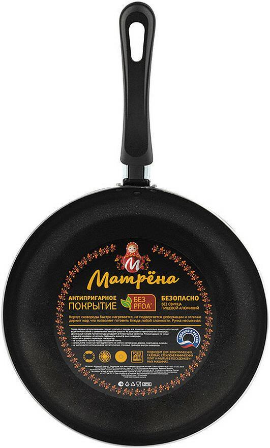 Материал: алюминий, бакелит Размер: 42*26*4,5 см (диаметр 26 см) Толщина стенок и дна 1,5 мм Индивидуальная упаковка: термоусадочная пленка + цветной вкладыш + стикер Цвет: черный Не подходит для индукционной плиты. Антипригарное покрытие Scandia от PPG (ex. Whitford®) выдерживает высокие температуры и длительный нагрев. Корпус сковороды быстро нагревается, не подвергается деформации и отлично держит жар, что позволяет готовить блюда любой сложности. Подходит для мытья в посудомоечных машинах. Ручка несъемная. Хранить в сухом, отапливаемом помещении при температуре от 10°C до 25°C.