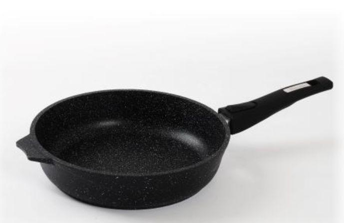 Сковорода 20 см с антипригарным покрынием и съемной ручкой серии "Гранит black" Подходит для всех типов плит, кроме индукционных. Можно использовать в посудомоечной машине. Можно использовать в духовке отдельно без ручки.