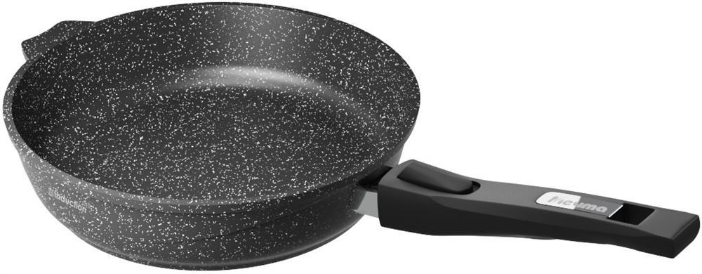 Сковорода индукционная 22 см. со съемной ручкой из бакелита. Антипригарное покрытие Greblon Rough на водной основе без PFOA серия "Гранит black Induction Pro". Подходит для всех типов плит. Можно использовать в посудомоечной машине. Ресурс более 15 000 циклов, толщина покрытия до 55 мкр. Толщина дна 7мм., толщина стенок 3,6-4мм. Покрытие Greblon Rough позволяет готовить с минимальным количеством масла, сохраняя вкусовые и полезные свойства продуктов. Литой толстостенный корпус не подвержен деформации, а утолщенное дно равномерно распределяет тепло по всей поверхности.