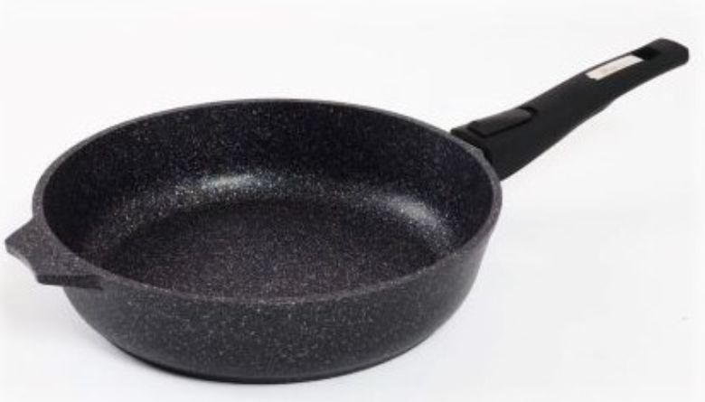 Сковорода 28см с антипригарным покрынием и съемной ручкой серии "Гранит star" Подходит для всех типов плит, кроме индукционных. Можно использовать в посудомоечной машине. Можно использовать в духовке отдельно без ручки.