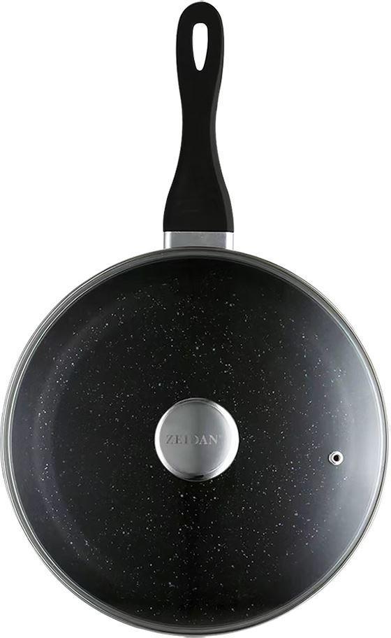 Сковорода ZEIDAN Z-90242 d24 см, Сковорода со стеклянной крышкой d 24 см, ВНУТРЕННЕЕ И ВНЕШНЕЕ КАМЕННОЕ ПОКРЫТИЕ "BLACK", литой алюминий, прорезиненная ручка в цвет корпуса, ИНДУКЦИОННОЕ ДНО.