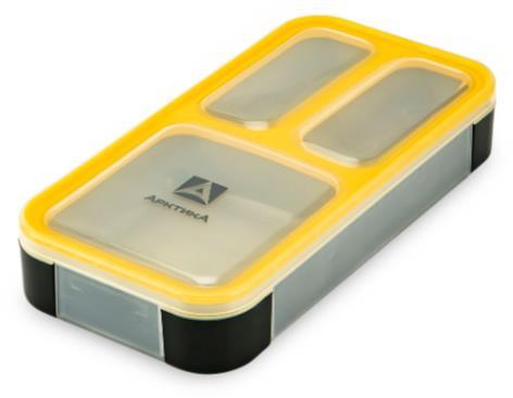 Ланчбокс тм "Арктика", 420 мл., арт. 034 Можно переносить боком Миниатюрный ланч-бокс на защелках с тремя отсеками возьмет на себя сохранность небольших порций и сэкономит максимум места в сумочке или рюкзаке. В нем можно переносить как горячие, так и холодные блюда, не переживая, что они протекут. За герметичность отвечают силиконовая прослойка по всему периметру и защищенные от случайного открывания защелки. Также вы можете использовать эту модель в качестве таблетницы или органайзера для мелочей. Используйте плоский ланч-бокс «Арктика» каждый день: с ним удобно рассчитывать граммовку порций, брать с собой в дорогу или на пикник нарезку, мягкие фрукты, ягоды или орехи. При необходимости ланч-бокс можно разогревать в микроволновой печи и мыть в посудомоечной машине (без крышки). Ланч-бокс «Арктика» изготовлен из проверенных пищевых материалов, полностью безопасных для здоровья и не выделяющих вредные бисфенолы (BPA free).