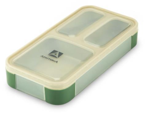 Ланчбокс тм "Арктика", 420 мл., арт. 034 Можно переносить боком Миниатюрный ланч-бокс на защелках с тремя отсеками возьмет на себя сохранность небольших порций и сэкономит максимум места в сумочке или рюкзаке. В нем можно переносить как горячие, так и холодные блюда, не переживая, что они протекут. За герметичность отвечают силиконовая прослойка по всему периметру и защищенные от случайного открывания защелки. Также вы можете использовать эту модель в качестве таблетницы или органайзера для мелочей. Используйте плоский ланч-бокс «Арктика» каждый день: с ним удобно рассчитывать граммовку порций, брать с собой в дорогу или на пикник нарезку, мягкие фрукты, ягоды или орехи. При необходимости ланч-бокс можно разогревать в микроволновой печи и мыть в посудомоечной машине (без крышки). Ланч-бокс «Арктика» изготовлен из проверенных пищевых материалов, полностью безопасных для здоровья и не выделяющих вредные бисфенолы (BPA free).