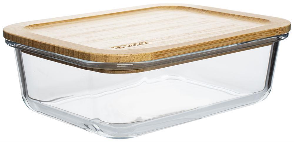 Контейнер жаропрочный, 1500 мл, 22*16,5*7,5 см Материал: боросиликатное стекло, бамбук Температурный режим для контейнера: до 400 °C Температурный режим для крышки 0°C ~ +30°C. Контейнер без крышки можно мыть в посудомоечной машине.