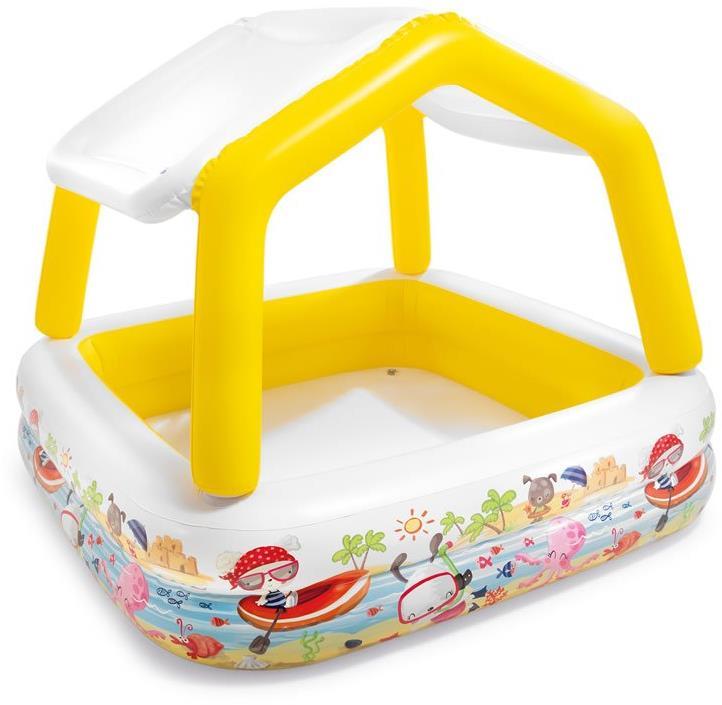 Надувной бассейн с навесом от солнца INTEX идеально подойдет для использования на даче и природе. Удобная сливная пробка позволяет быстро освободить бассейн от воды. Размер в надутом состоянии: 158х158х122 см.