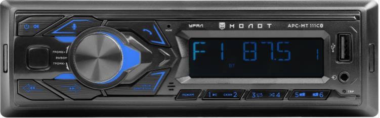 Головное устройство формата 1 DIN c Bluetooth. Управление радиоприемником с помощью приложения SmartBT iPlug. Малые габариты. Голосовой помошник. 1 пара RCA выходов. Напряжение питания, В: 14,4 (12) Установочные размеры, мм: 182 х 53 х 32 Диапазон принимаемых частот тюнера, МГц: 87,5 – 108 Максимальная выходная мощность (нагрузка 4 Ом), Вт: 4 х 25 Напряжение на линейном выходе (макс.), В: 5 Пределы регулировки тембра на частотах эквалайзера, дБ: ±7 Частотная характеристика аудиопроигрывателя, Гц, не уже: 20 - 20000 Цвет подсветки: синий