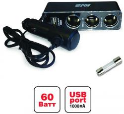 NOVA BRIGHT электропитания от прикуривателя 3 гнезда + 2 USB-порта, 1000мА, 12/24В 46902 406