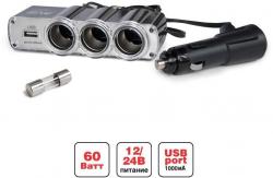 AVS Разветвитель прикуривателя 12/24 (на 3 выхода+USB) CS314U 401