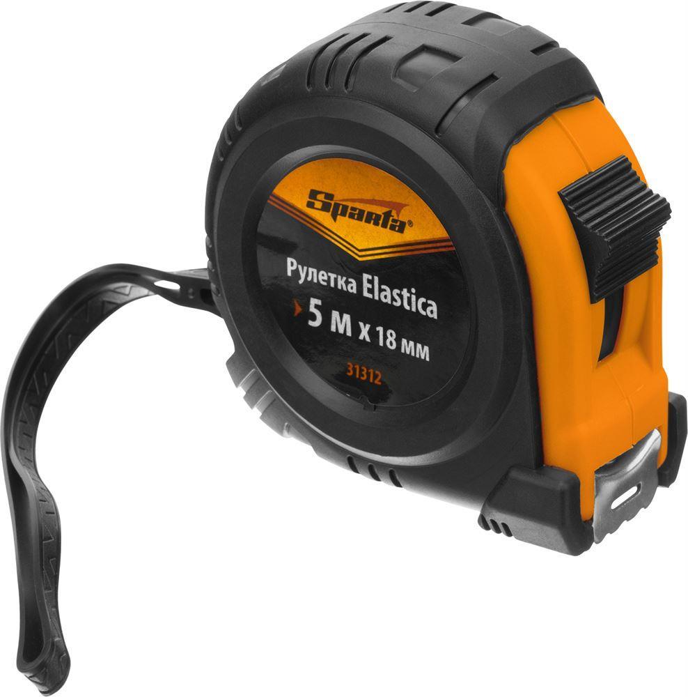 Рулетка Sparta «Elastica» 31312 с лентой 5 м х 18 мм, в обрезиненном корпусе, — это универсальный инструмент для измерения длины заготовок, различных поверхностей, мебели, дверных и оконных проемов и т.д. Она будет полезна в быту, на даче, в гараже, в мастерской. Благодаря окошку на зацепе ее также можно использовать в качестве циркуля.ПреимуществаНадежность и долговечность конструкции рулетки достигается за счет обрезиненного пластикового корпуса и возвратной пружины.Лента покрыта защитной краской, таким образом достигается ее износостойкость.Рулетка оснащена механическим стопором, благодаря которому ленту можно удерживать на нужной длине.Плавающий зацеп позволяет производить измерения с точностью до миллиметра.Толщина ленты составляет 18 мм, что позволяет работать в труднодоступных местах.Шкала, нанесенная крупными символами, легко читается даже на расстоянии.Три заклепки надежно фиксируют зацеп на ленте.