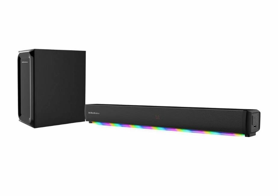 2.1 Саундбар с LED подсветкой и беспроводным сабвуфером, 450Вт Максимальная выходная мощность, 90 Вт Выходная мощность RMS, сопротивление 4Ом, 6.5" Беспроводной сабвуфер Разноцветная LED подсветка звуковой панели с 7-ю режимами работы, Беспроводная передача сигнала по Bluetooth, Цифровой HDMI (ARC) и Optical вход, Аудио форматы: MP3/WMA/FLAC/WAV, LED дисплей, Пульт управления, Поддержка воспроизведения с USB накопителя, Линейный вход, Размер звуковой панели: 941 x 80 x 88 мм, Размер сабвуфера: 192 x 310 x 375 мм