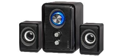 Акустическая система, суммарная выходная мощность (RMS) 11 Вт, диапазон частот 40–18000 Гц, питание - 230 В / 50 Гц, светодиодная подсветка регулятора громкости, материал корпуса и сателитов - пластик.