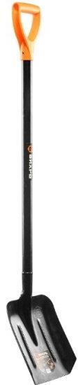 длина лопаты: 120 см, длина полотна: 27,7 см, ширина полотна: 23 см, металлический черенок