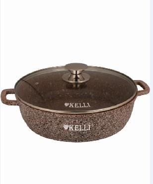 ОБЪЕМ 5л Сковорода-сотейник из высокопрочного алюминия с гранитным покрытием, с индукционным дном. Силиконовые накладки для ручек съемные. Стеклянная крышка с паровыпуском. Пригодна для всех видов плит, в том числе индукционных