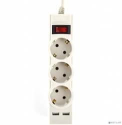 PERFEO (PF_E1640) "POWER-S", 3,0м, 3 розетки 10А, 2USB, 2500 Вт, двойная защита, серый 313