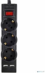 PERFEO (PF_E1641) "POWER-S", 3,0м, 3 розетки 10А, 2USB, 2500 Вт, двойная защита, черный 313