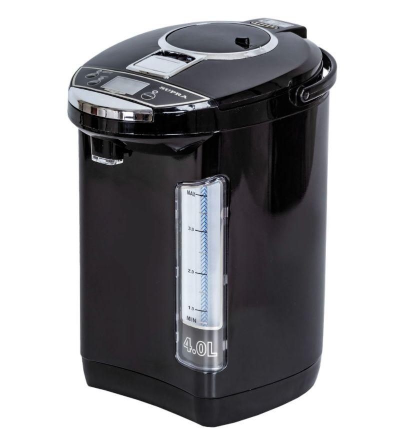 SUPRA TPS-4911 Основные характеристики Объем, л 4 Тип управления электронное Электрический насос есть Механический насос есть Подача воды нажатием чашки есть Поворотное основание есть Функции Кипячение есть Повторное кипячение есть Поддержание температуры есть Выбор температуры есть Индикация Дисплей LCD Индикатор уровня воды есть Комплектация Комплектация термопот, гарантийный талон, инструкция на русском языке Корпус Материал внутренней камеры нержавеющая сталь Энергопотребление Потребляемая мощность, Вт. 800 Мощность в режиме поддержания температуры, Вт 70 Электропитание, в 220-240