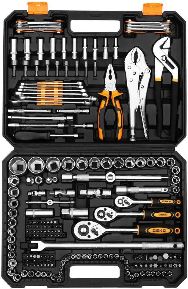Набор инструментов для дома и авто в кейсе DEKO DKMT213 предназначен для обслуживания автомобилей, а также подойдет для проведения ремонта бытовых конструкций, садовой техники дома и на даче. Все инструменты набора выполнены из стали, что обеспечивает их долгий срок службы.