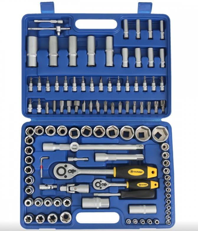Набор слесарно-монтажный Калибр НСМ-108 (артикул 121005) содержит 108 предметов и предназначен для проведения слесарных работ. Все инструменты выполнены из хромванадиевой стали со специальным покрытием для защиты от коррозии. Набор упакован в удобный пластиковый кейс.