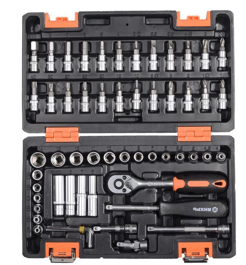 Набор инструментов ВИХРЬ, 1/4", 57 предм, кейс. Ключ трещоточный 1/4"" CrV, PP+TPR. Кардан 1/4"" CrV. Удлинитель CrV 1/4"" 50 мм, 100 мм. Отвертка-держатель 1/4"" CrV. Комплект шестигранных ключей 1.5мм, 2.0мм, 2.5мм, 3.0мм, 4.0мм Головки торцевые CrV 1/4"" 4, 4.5, 5, 5.5, 6, 7, 8, 9, 10, 11, 12, 13, 14 +удлинённые 6, 7, 8, 10. Головки торцевые S2 1/4"" со вставкой Т8, T10, Т15, Т20, Т25, Т27, Т30, Т40 H3, H4, H5, H6, H7, H8, H10 SL4, SL5.5, SL6,5 PH1, PH2, PH3 PZ1, PZ2, PZ3. Головки торцевые CrV 1/4"" E4; E5; E6; E7; E8; E10.