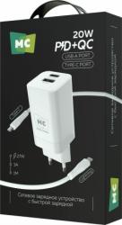 MORE CHOICE (4620202555779) NC85i 1USB+1Type-C 3.0A PD 20W+QC3.0 для Lightning 8-pin Type-C White 334