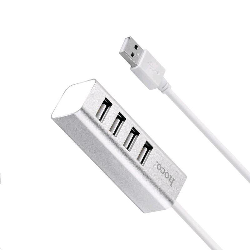 USB Хаб-концентратор. Позволяет передавать данные и заряжать устройства через свои USB-порты. Материал - пластик. Разъёмы - 4хUSB. Входное напряжение - 5В. Длина кабеля - 80см. Цвет - серебристый.