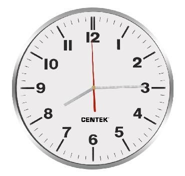 Часы настенные Centek СТ-7100 белый (белый + хром) 30 см диам., круг, ПЛАВНЫЙ ХОД,кварцевый механизм