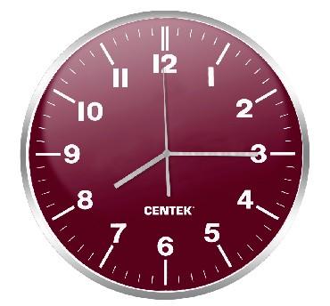 Часы настенные Centek СТ-7100 красный (пурпур + хром) 30 см диам., круг, ПЛАВНЫЙ ХОД, кварцевый механизм