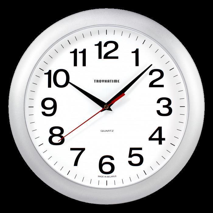 Часы настенные, модель 11170100, диаметр 290 мм, стекло пластиковое, пластиковый обод, цвет-серебро.